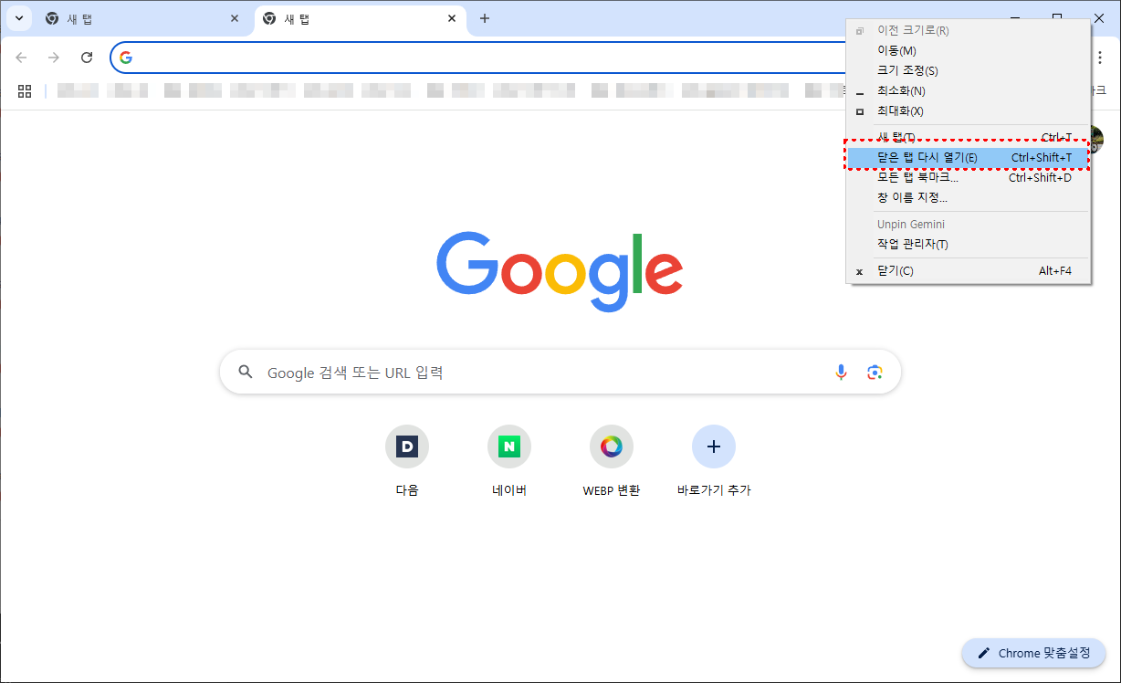 크롬 실수로 닫은 탭 복구하는 법, 이전 창 복원까지 확실하게