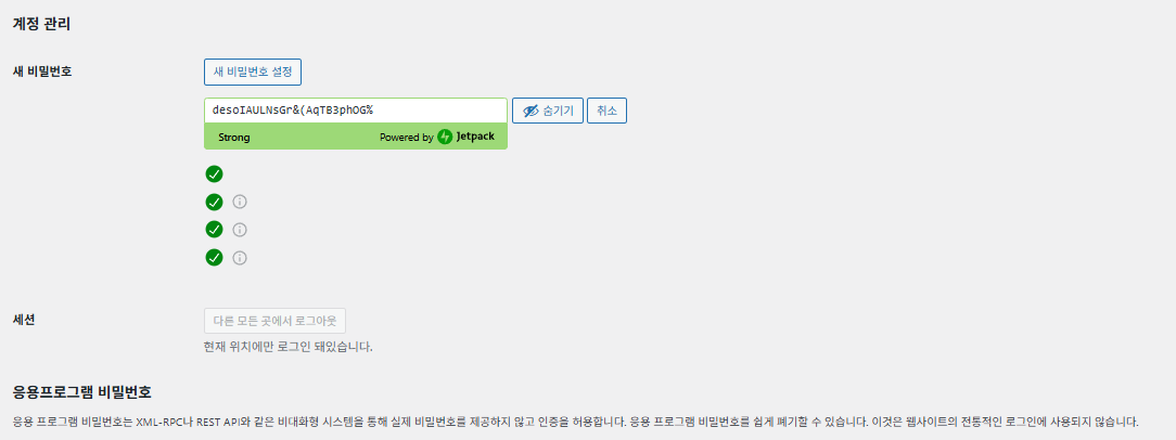 일부 보안 플러그인(예: iThemes Security, Wordfence)은 비밀번호 복잡도나 변경 주기 제한을 설정해둔 경우가 있습니다. 이럴 땐 플러그인 설정에서 관련 옵션을 조정하거나, 일시적으로 플러그인을 비활성화한 후 다시 변경을 시도해야 합니다.