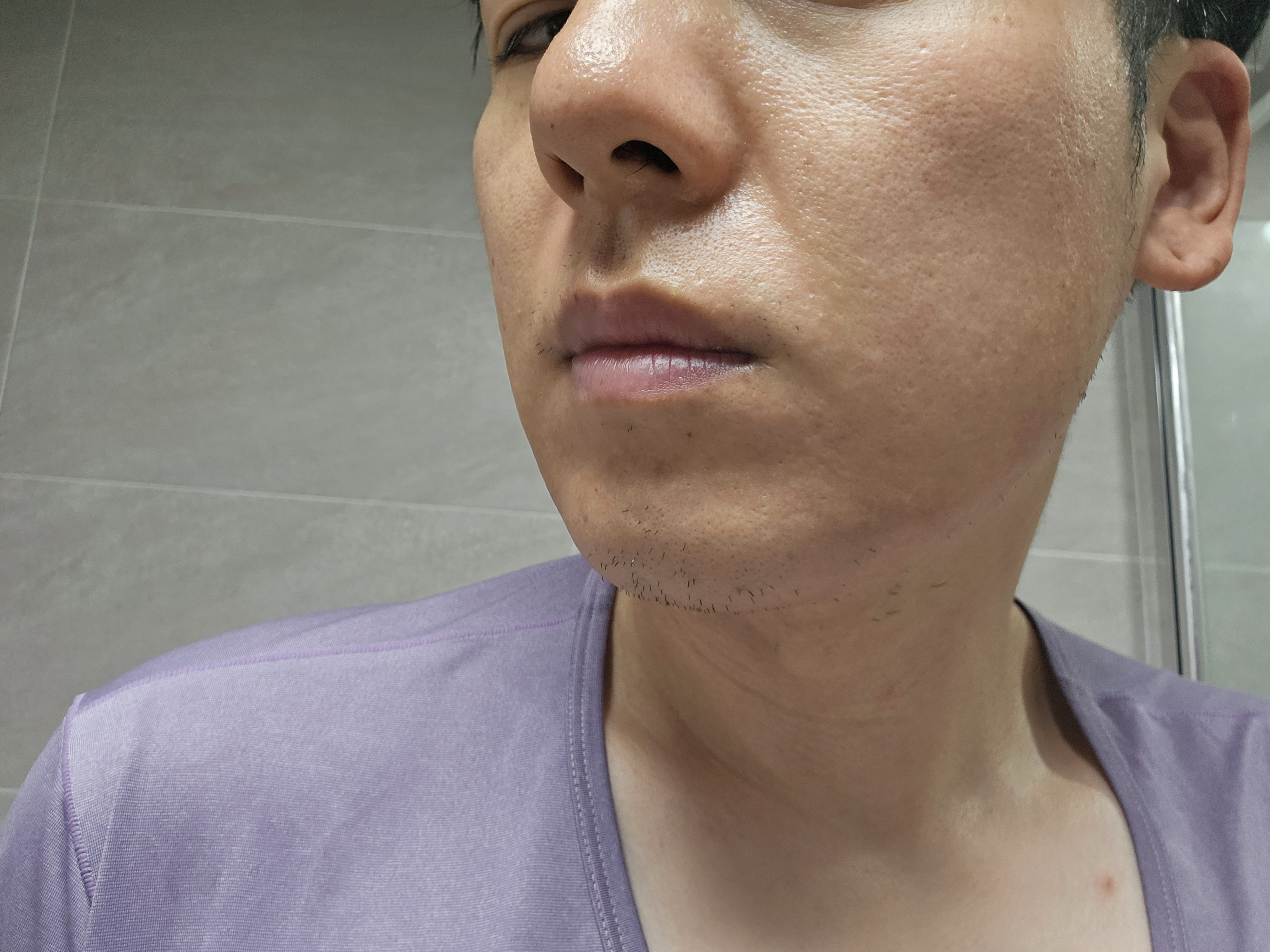 그래서 일반적인 면도기보다 훨씬 넓은 면적을 커버할 수 있고, 입체 플로팅 기술이 적용돼 있어서 얼굴의 윤곽에 따라 헤드가 자연스럽게 움직여요. 실제로 턱선이나 목, 볼처럼 굴곡이 있는 부위를 따라가면서도 자극 없이 부드럽게 면도가 되더라고요.