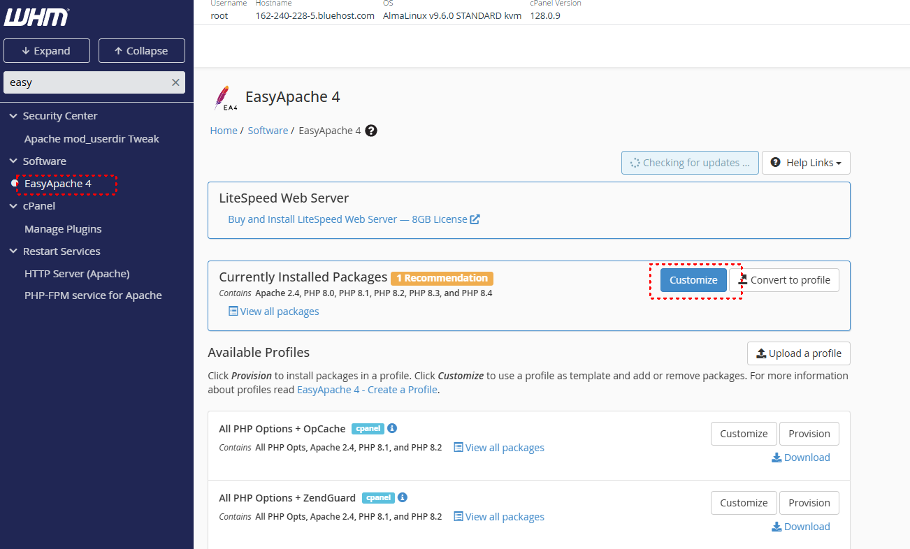 - EasyApache4에서 php-fpm이 설치돼 있어도 rebuild_phpconf 명령어가 적용되지 않거나