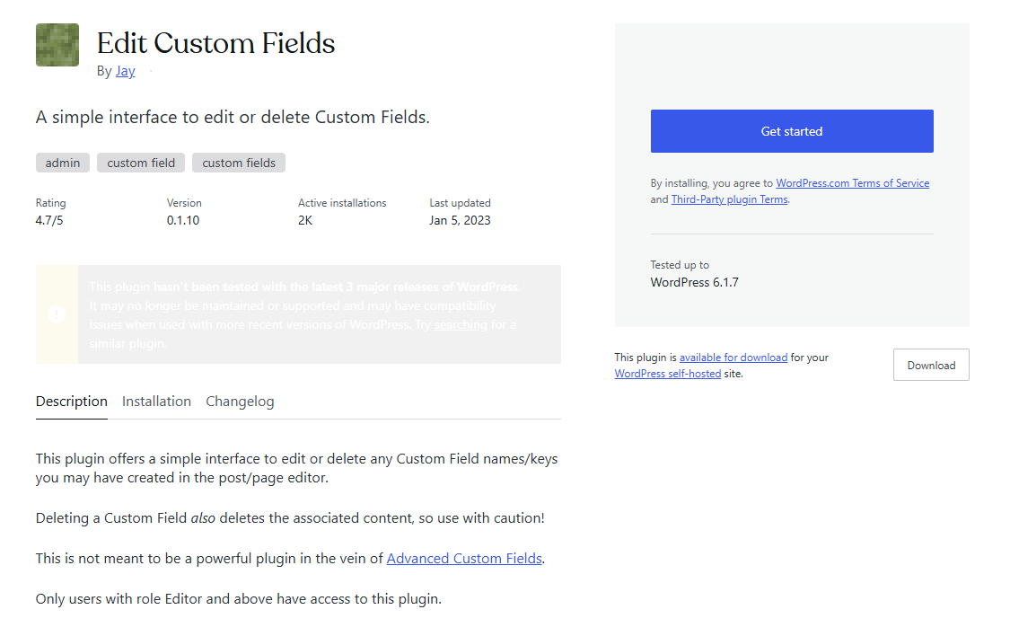 Edit Custom Fields는 한때 많은 사이트에서 사용되던 간단한 유틸리티성 플러그인으로, 오랜 기간 업데이트되지 않았음에도 불구하고 워드프레스 구조 변화에 크게 영향을 받지 않는 커스텀 필드 관리 기능만을 다루고 있기 때문에 실사용에는 큰 문제가 없는 편입니다.