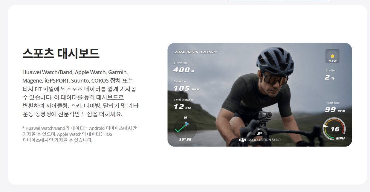 - GPX 및 .fit 파일 자동 인식, 영상과 자동 싱크