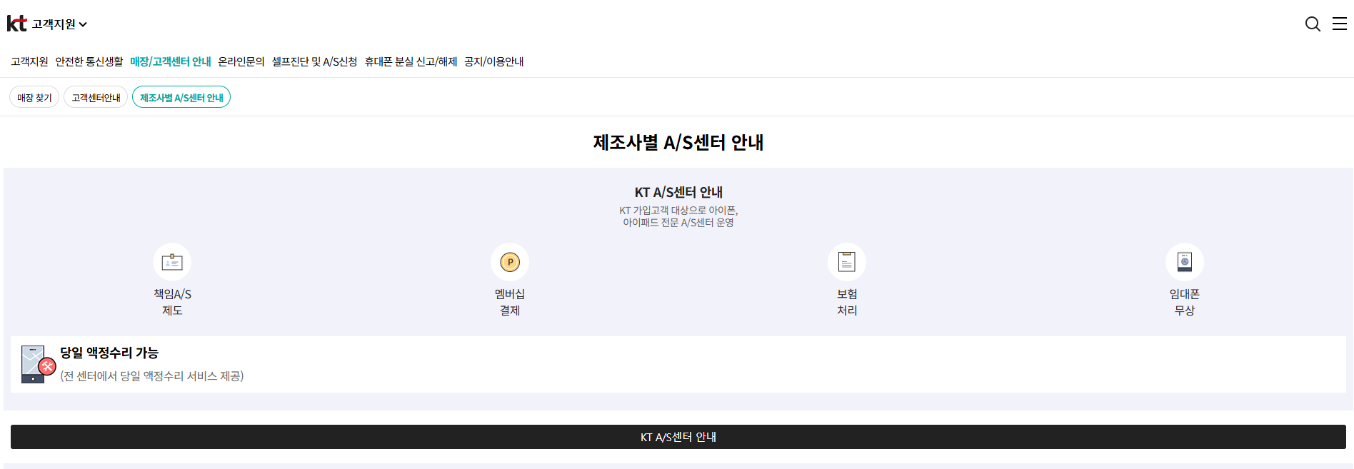 | KT | KT 고객센터 앱 / 모바일 A/S 접수 페이지 |