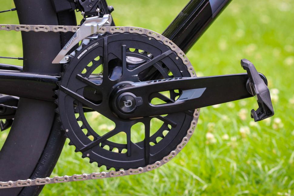 카본 크랭크암이 적용되면서 실측 725 그램(48 × 35T, 스핀들 파워미터 포함)으로 내려왔고, 스핀들 내장 파워미터는 AAA 배터리 하나로 400시간을 버틴다. 따로 충전 케이블을 챙길 필요가 없다는 점에서 장거리 투어러들에게 반가운 변화다.