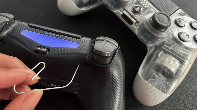 - 컨트롤러 뒷면의 작은 리셋 구멍(나사 옆)을 핀이나 바늘로 10초간 눌러주기
