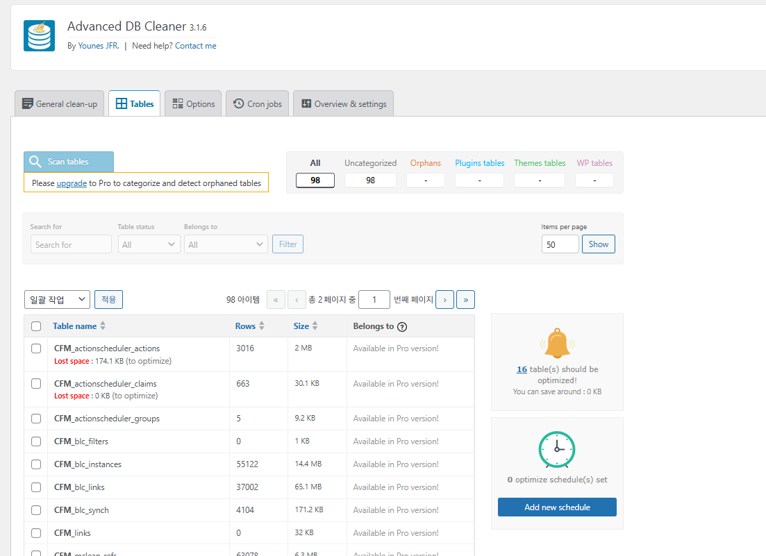 Advanced DB Cleaner PRO는 자체적으로 Scheduler(스케줄러) 기능을 제공합니다.