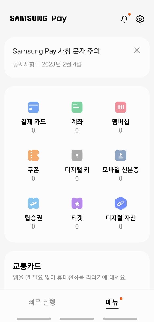“이 기기에 카드를 등록하면 기존 기기에서 결제 및 교통카드 기능이 해제됩니다.”