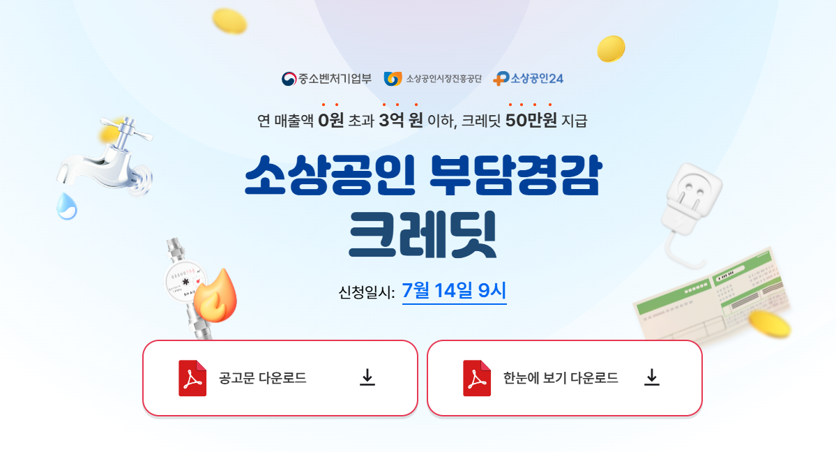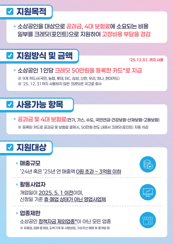 1. 소상공인 부담경감 크레딧 – 공공요금·4대 보험 최대 50만원 지원
