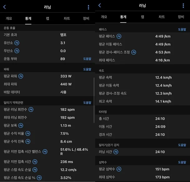 | 러닝 다이내믹스 | 보폭, 케이던스, 체공 시간, 지면 접촉 시간 등 러닝 폼 실시간 분석 |