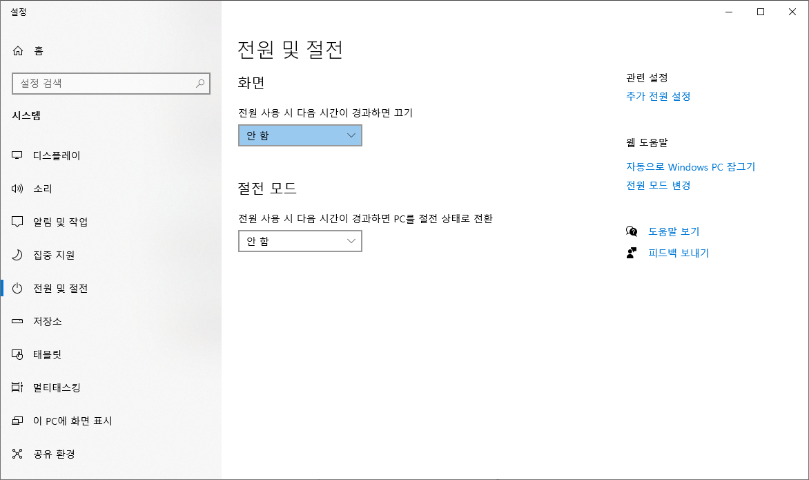 메뉴 이름은 제조사마다 조금씩 다르지만, 대부분 전원 관련 메뉴나 ACPI 메뉴 안에 들어 있습니다.
