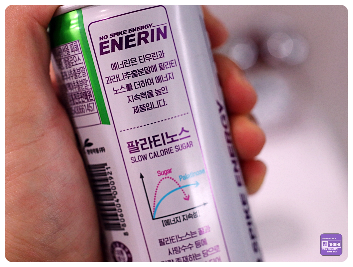 특히 에너린에는 슬로우슈가라고 알려진 팔라티노스가 900mg이나 함유되어 있는데, 이는 일반 설탕 대비 흡수 속도가 약 1/5 수준으로 매우 느린 천연당이라고 합니다.