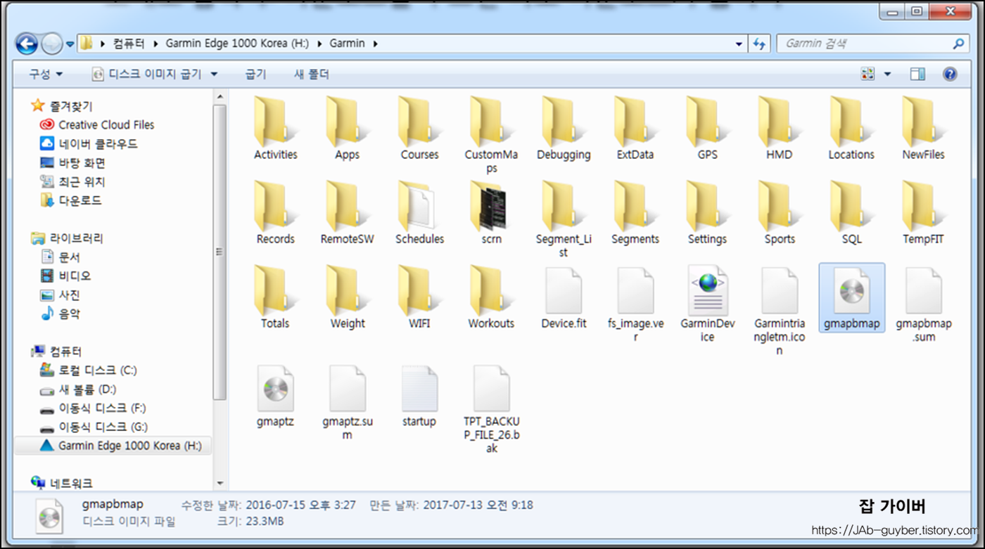 다운로드된 지도는 가민을 컴퓨터에 연결 후 폴더에 넣어줍니다.