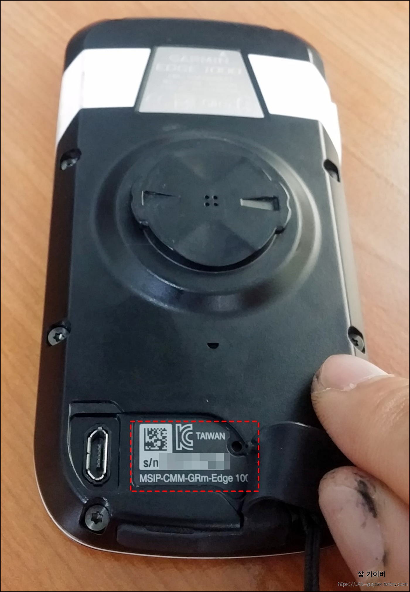 가민1000의 경우 충전포트부분을 열면 시리얼을 확인할 수 있습니다.