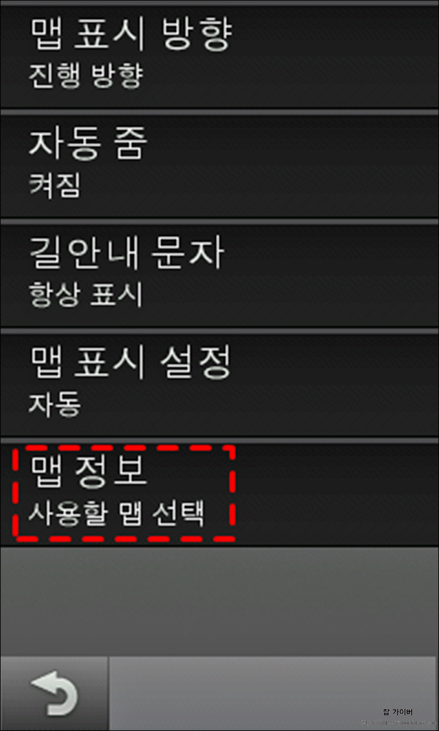 가밋엣지를 실행 후 네비에기션 -> 맵정보 -> 맵을 선택합니다.