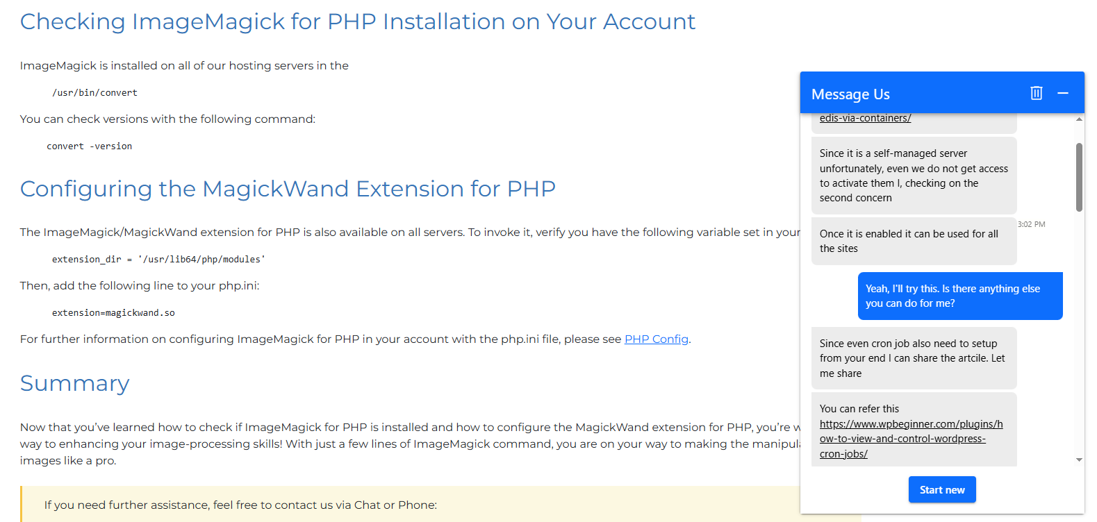 내가 사용하는 Bluehost VPS에서도 초기엔 imagick이 누락되어 있었고, 썸네일 생성이 불안정하거나 일부 플러그인에서 이미지 업로드 오류가 발생했다. Bluehost 고객센터에 아래와 같이 요청해서 문제를 간단히 해결할 수 있었다.