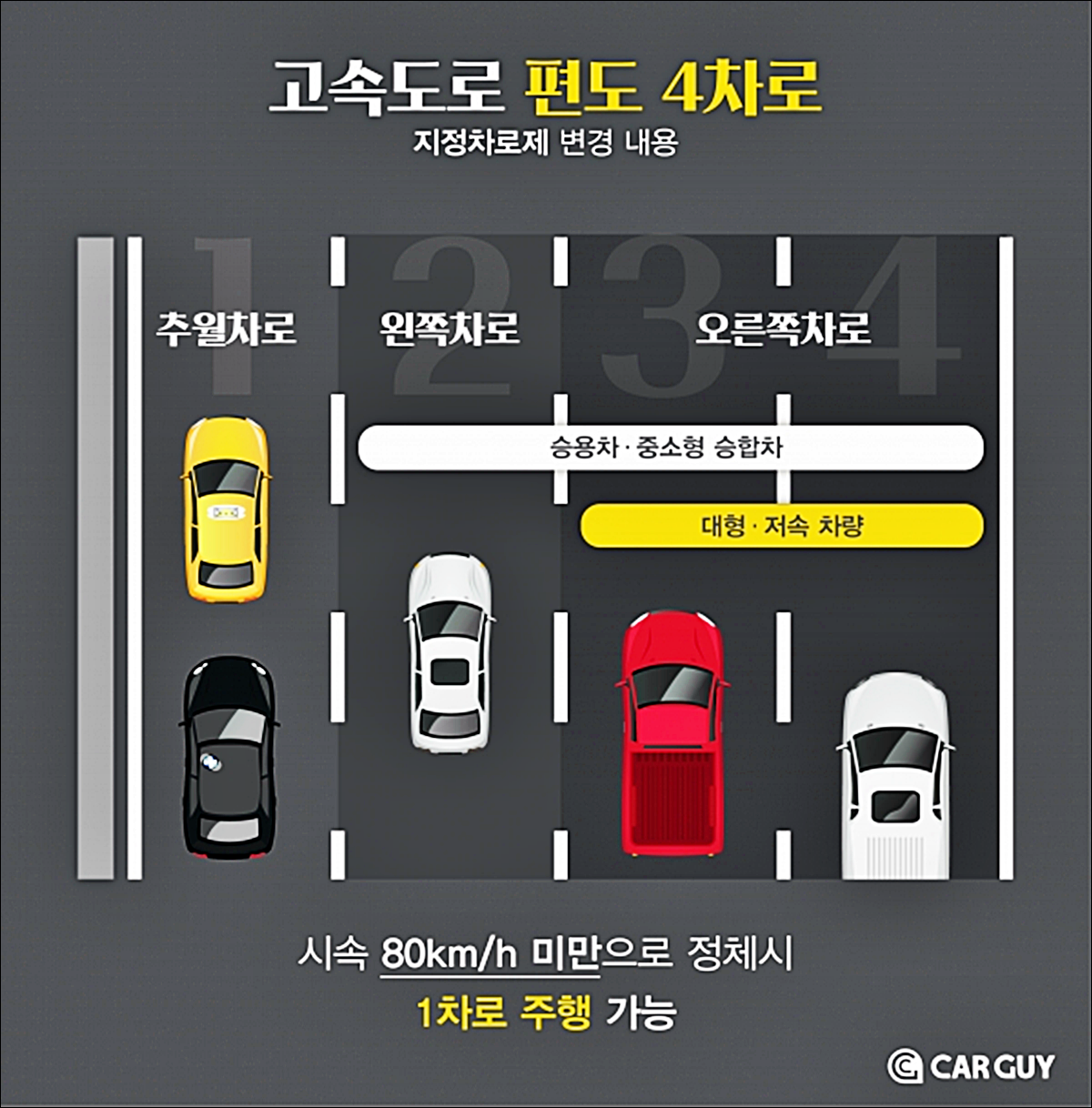| 경차/소형차 | 2차로, 3차로 |