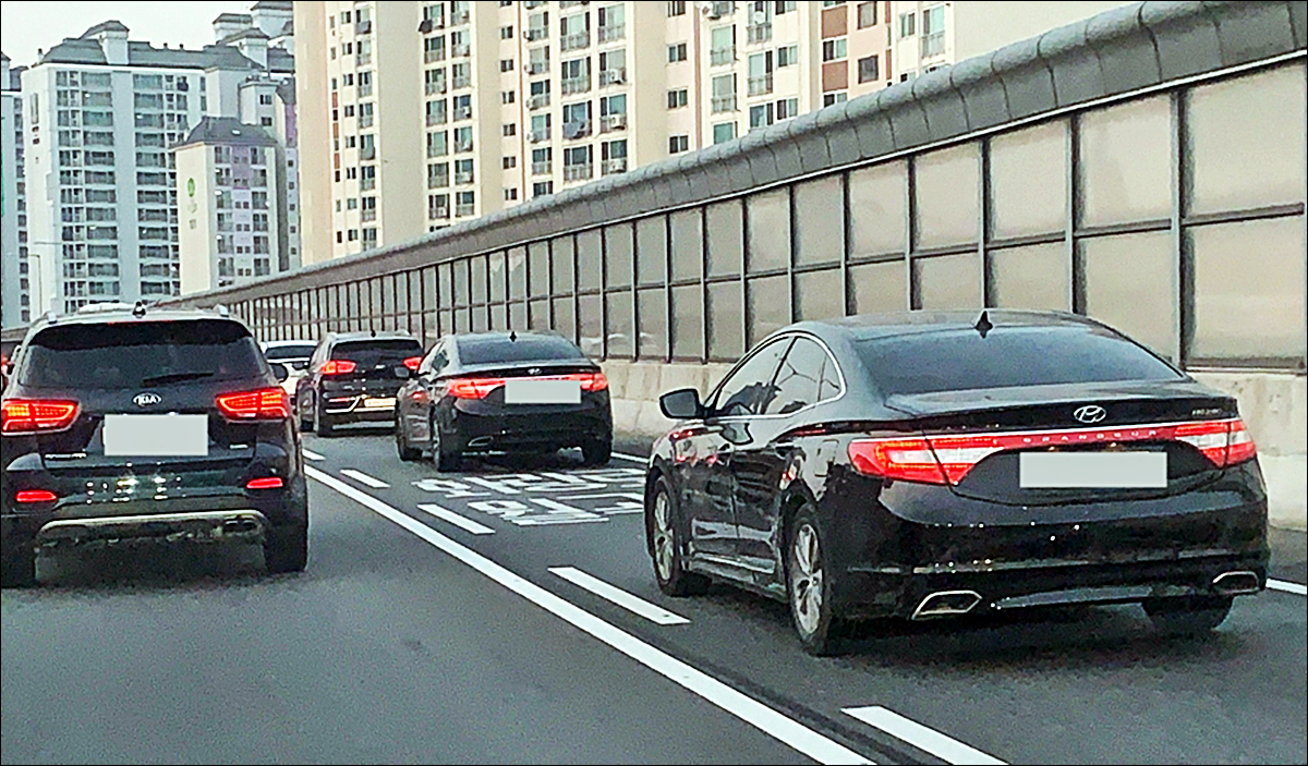 그렇기 때문에 저속차량이나 대형차량의 경우 자동차 차로의 가장 끝인 맨 오른쪽 차로에서 운행을 해야 합니다.
