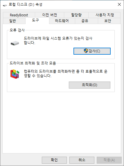 윈도우 내장 도구인 CHKDSK를 사용하여 드라이브의 파일 시스템 오류나 배드 섹터를 검사하고 복구할 수 있습니다.