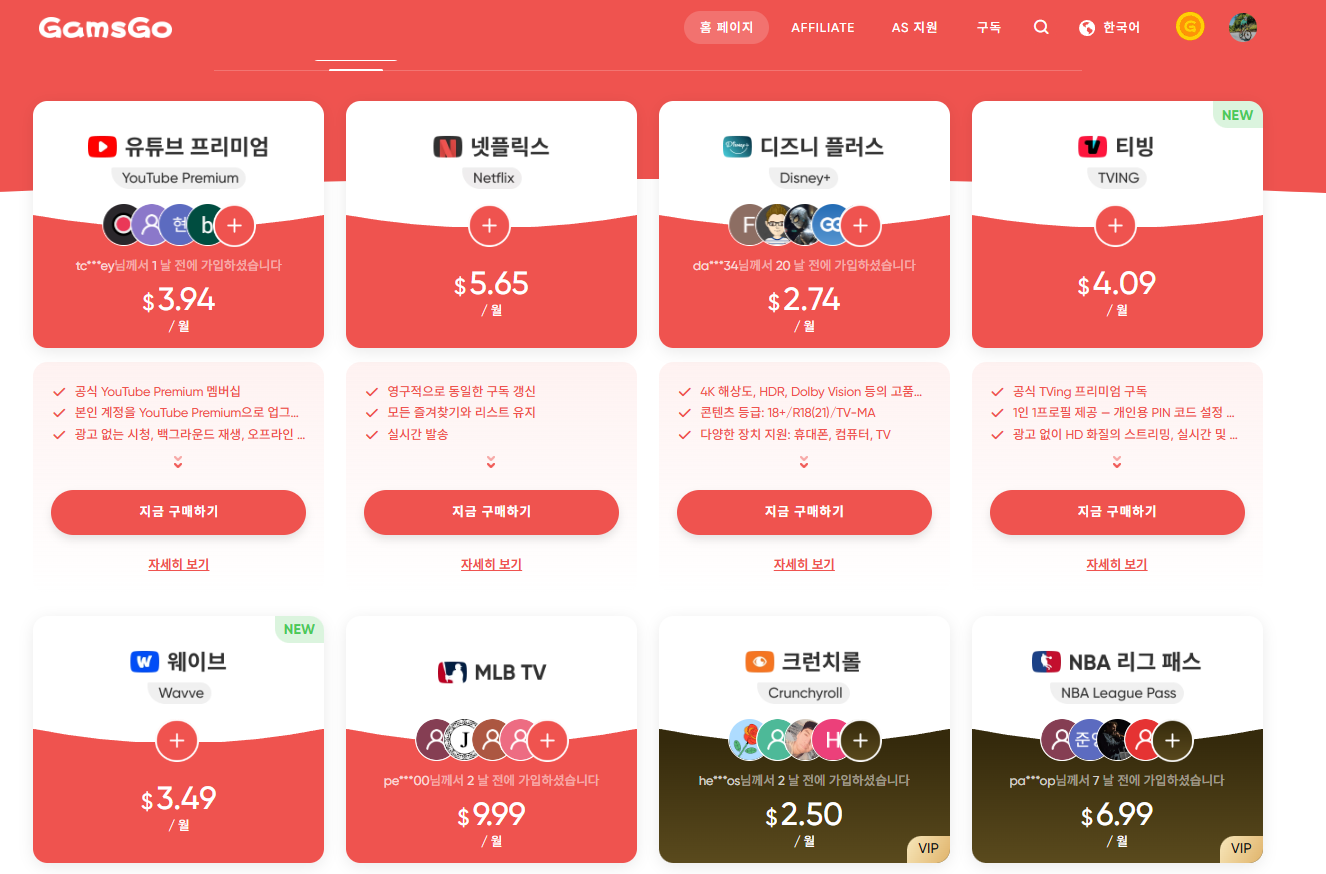겜스고(GamsGo)에서 티빙, 웨이브도 저렴하게 즐기자!