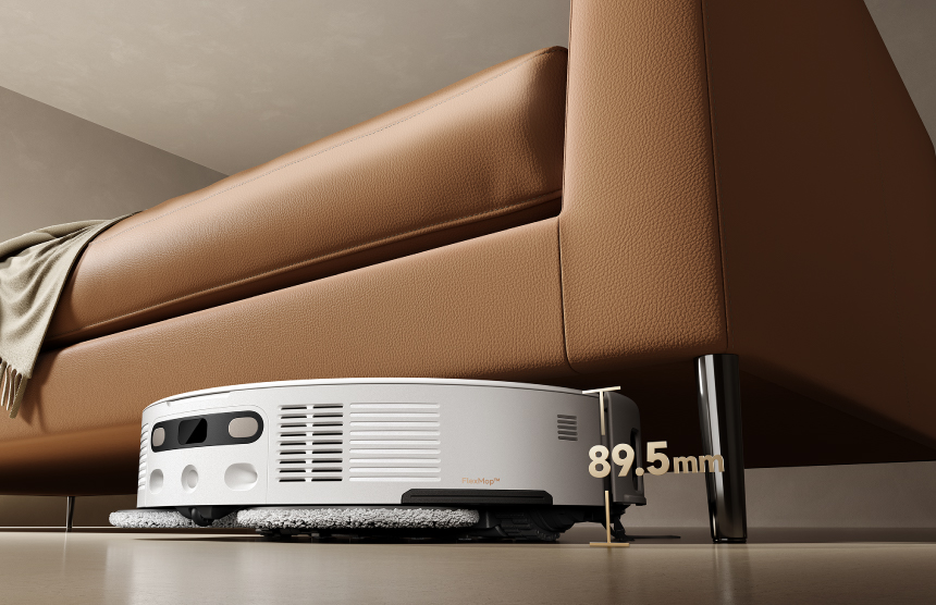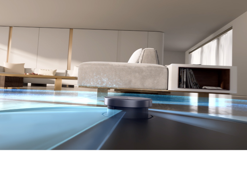 낮은 가구 아래로 들어갈 때 본체가 더욱 컴팩트해지고, 넓은 공간에서는 확장되어 효율적인 내비게이션이 가능합니다.