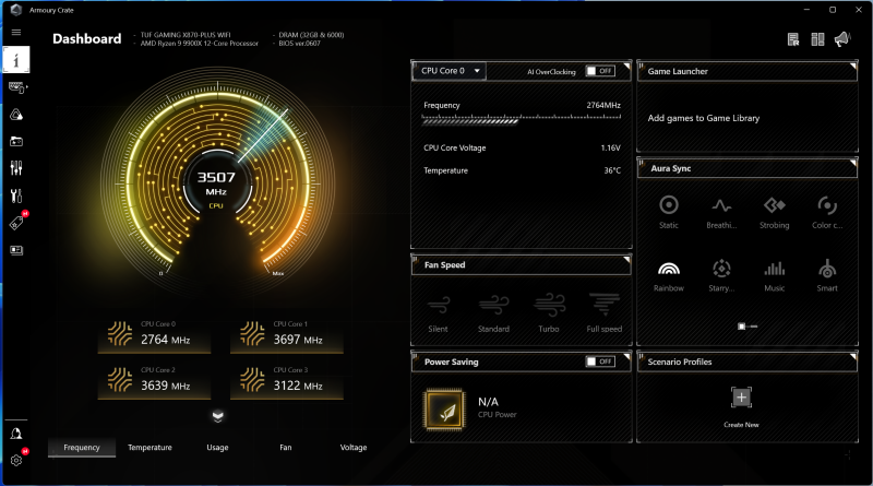 Fan Xpert 2+를 열면 원클릭 자동 튜닝과 저부하 정숙 모드를 쉽게 켜고 끌 수 있고, AI Cooling II는 짧은 스트레스 테스트로 시스템 특성을 파악해 불필요한 소음을 줄인다.