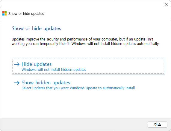 - 공식 다운로드 링크: Show or Hide Updates 도구 다운로드