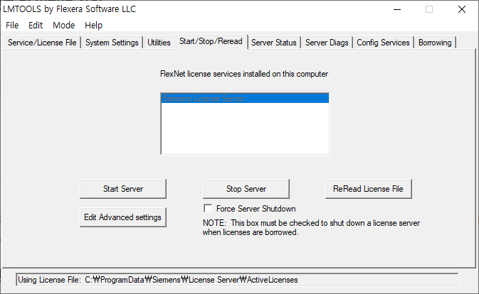 - 라이선스 서버 시작/중지(Start/Stop/Reread)