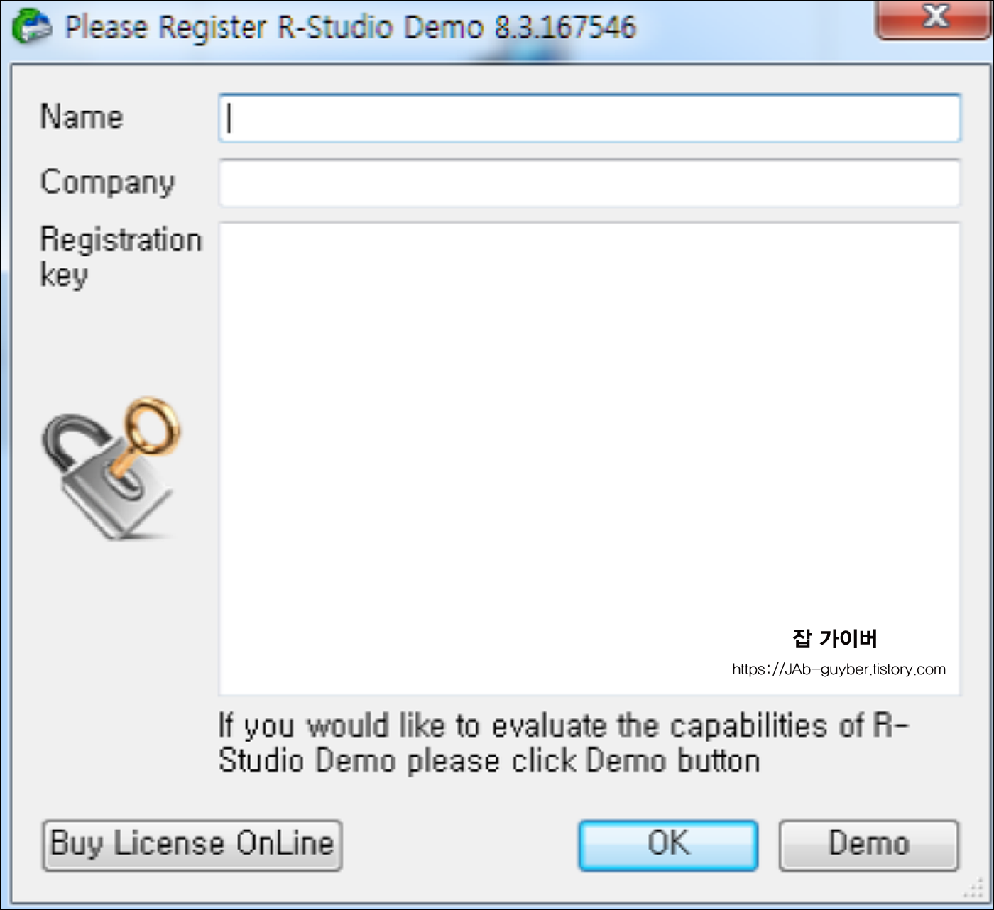 예전에는 이런 창에 임의의 키를 복사해 넣어 활성화하는 방식이 널리 공유되기도 했지만, 지금은 거의 모든 복구 프로그램이 온라인 검증을 강화한 상태라, 굳이 위험을 감수하면서까지 쓸 이유가 없습니다.