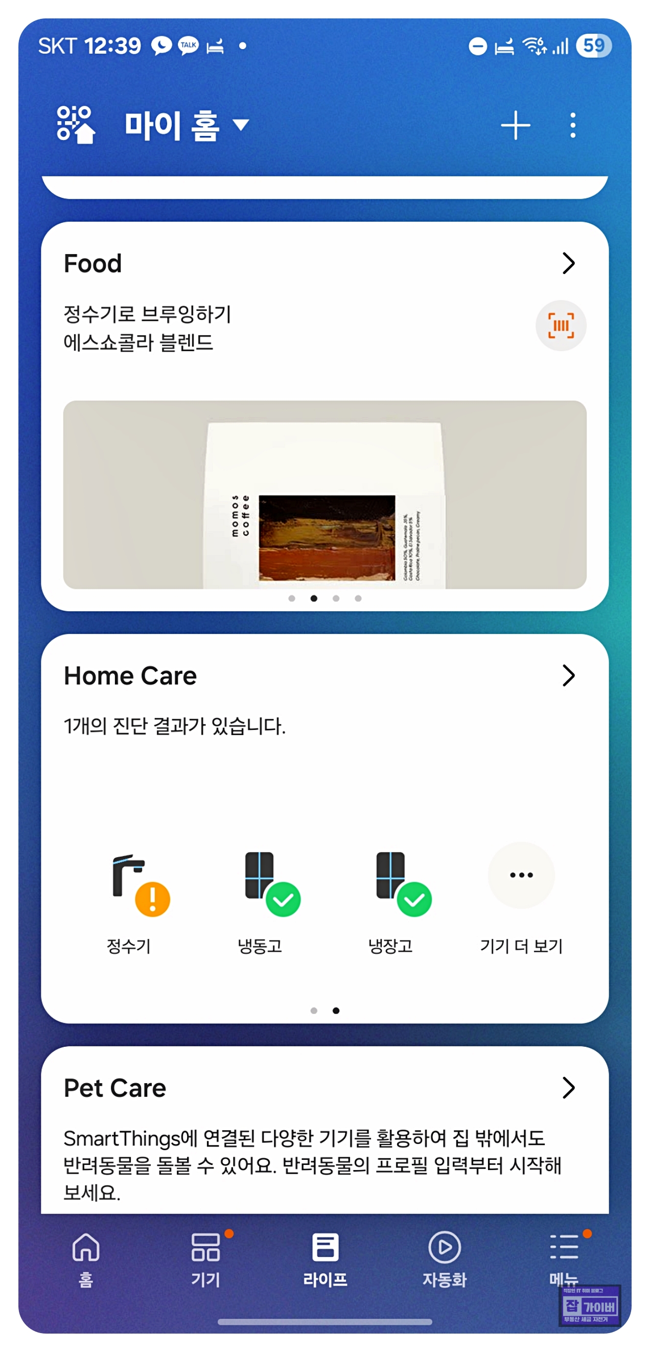 또한 삼성 SmartThings 앱과 연동하면 필터 잔여량도 쉽게 확인할 수 있어 관리가 훨씬 편리합니다.