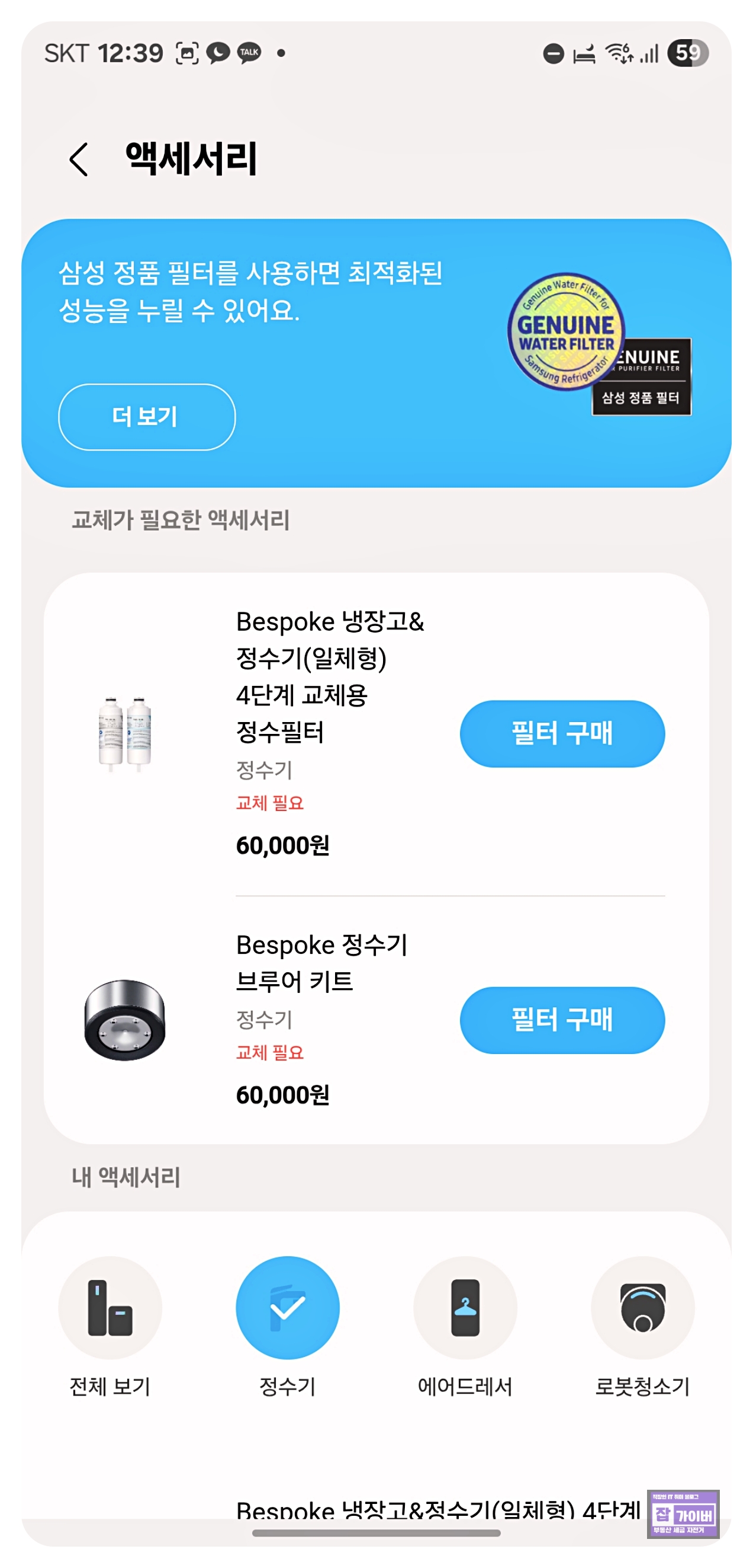 작년에 결혼하면서 집안 가전을 삼성 비스포크로 맞췄는데, 딱 1년이 지나니 정수기 필터 교체 알림이 뜨더군요. 사실 처음엔 필터 교체가 번거롭지 않을까 걱정했는데, 생각보다 간단하게 셀프로 교체할 수 있어서 공유해보려 합니다.
