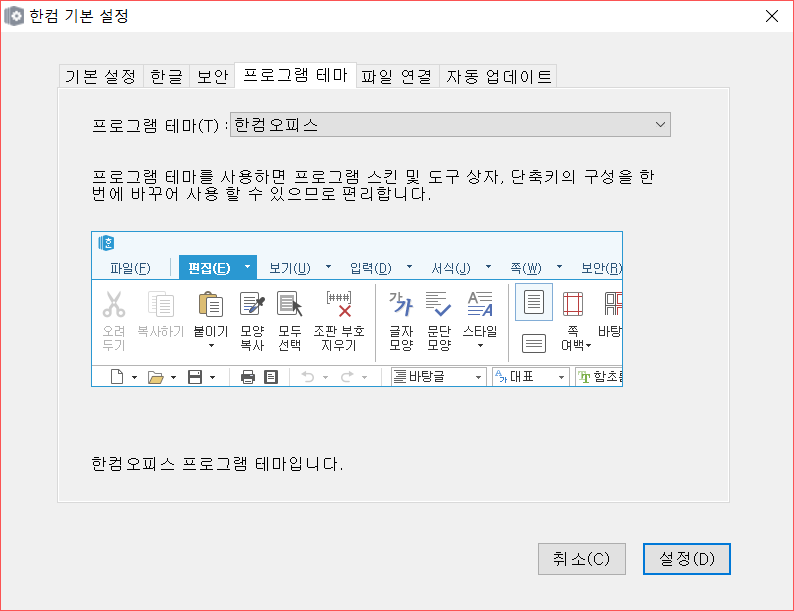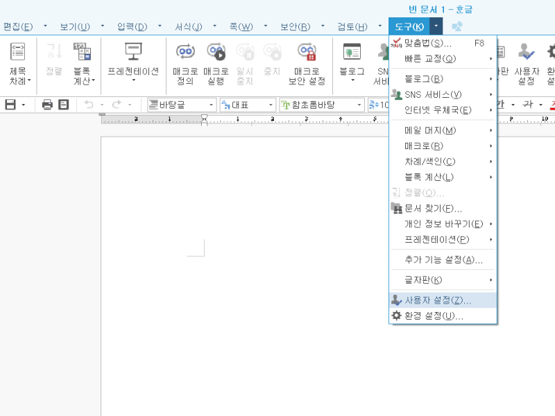 또 다른 방법은 한컴 기본 설정을 실행해 초기화하는 것이다. 시작 메뉴에서 한글과컴퓨터 → 한컴 기본 설정을 열고 ‘기본 값으로 설정’을 누르면 대부분의 환경 설정이 원래 상태로 복원된다.
