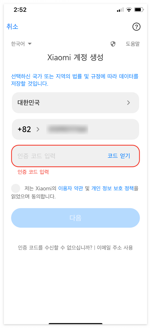 3) 샤오미 계정 생성/로그인
