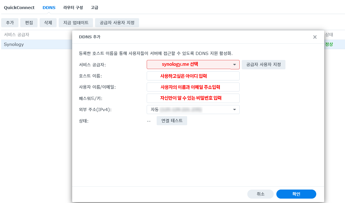 시놀로지 NAS 접속방법 IP주소 확인 Web Assistant QuickConnect 설정