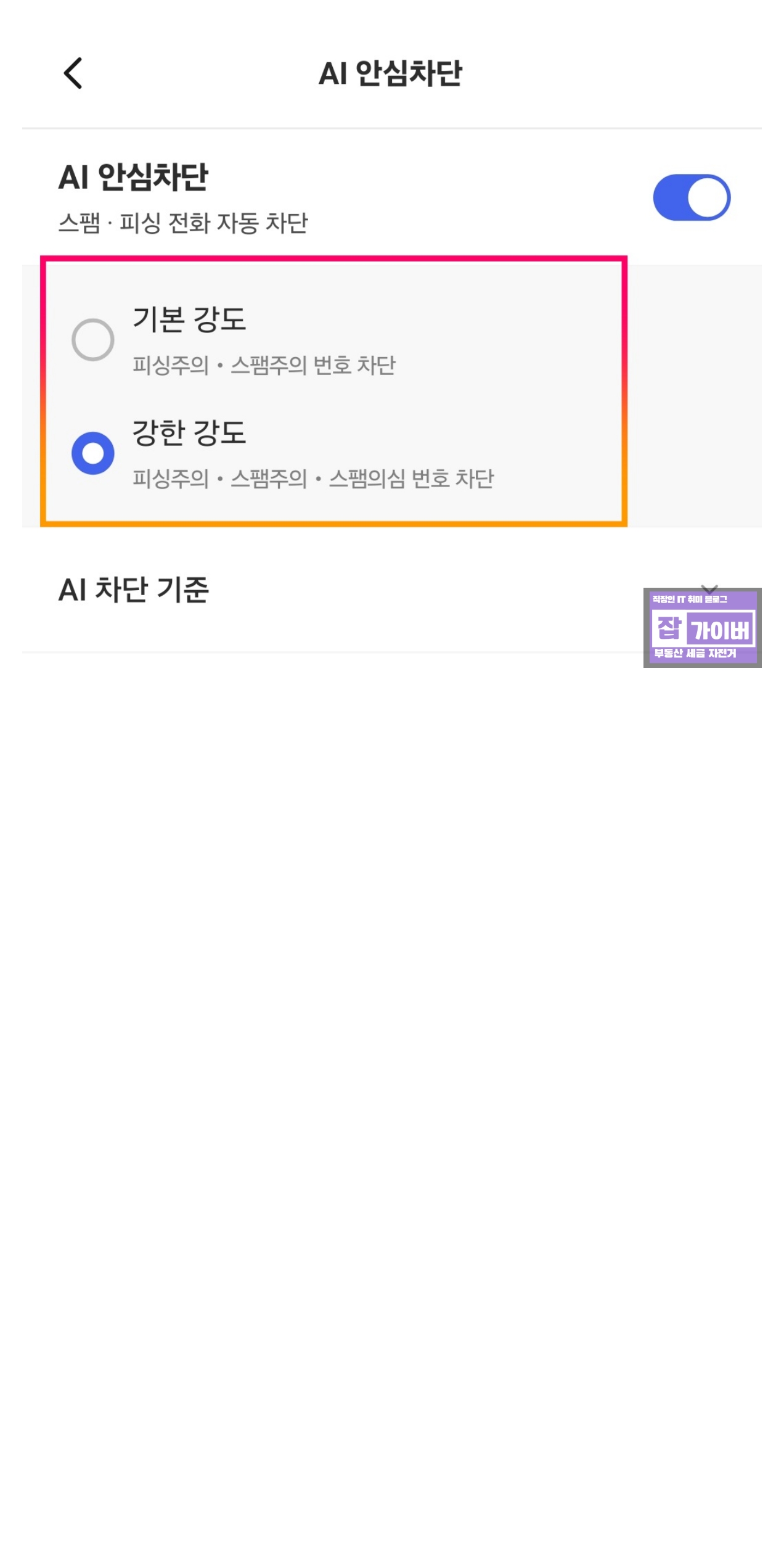 🧠 '인텔리전스로 차단' 기능