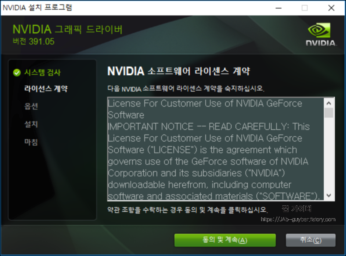 엔비디아의 지포스 그래픽카드로 설치를 진행합니다.