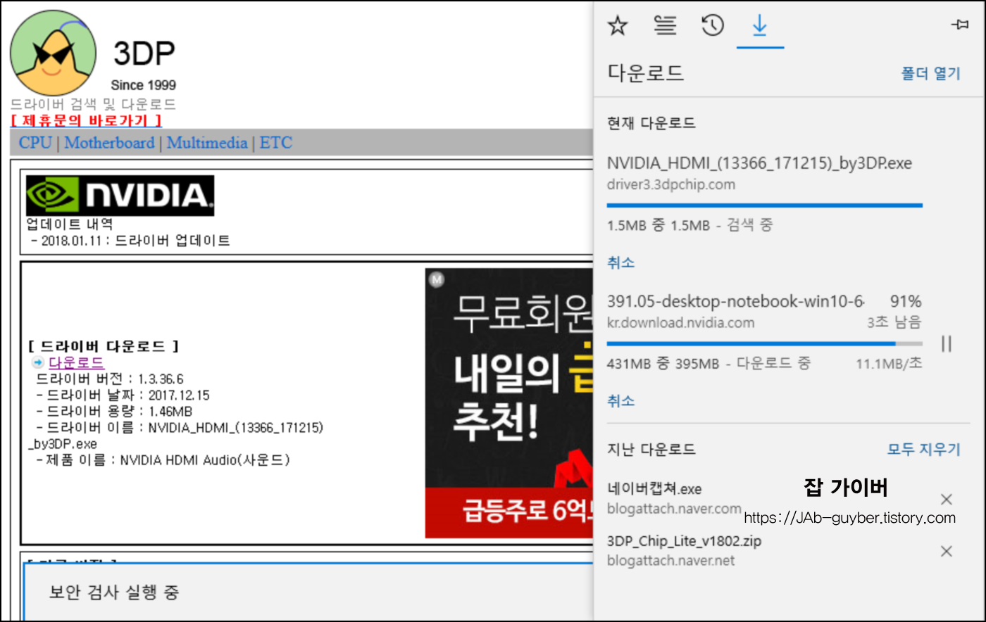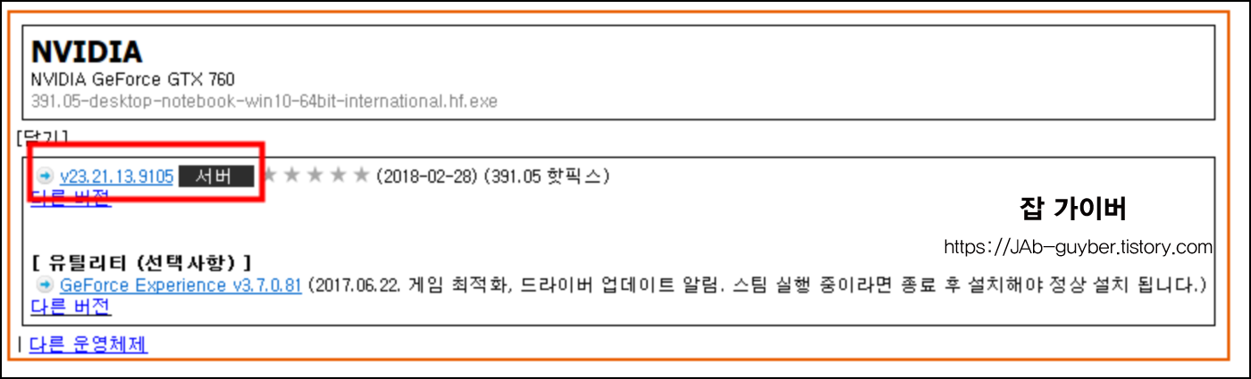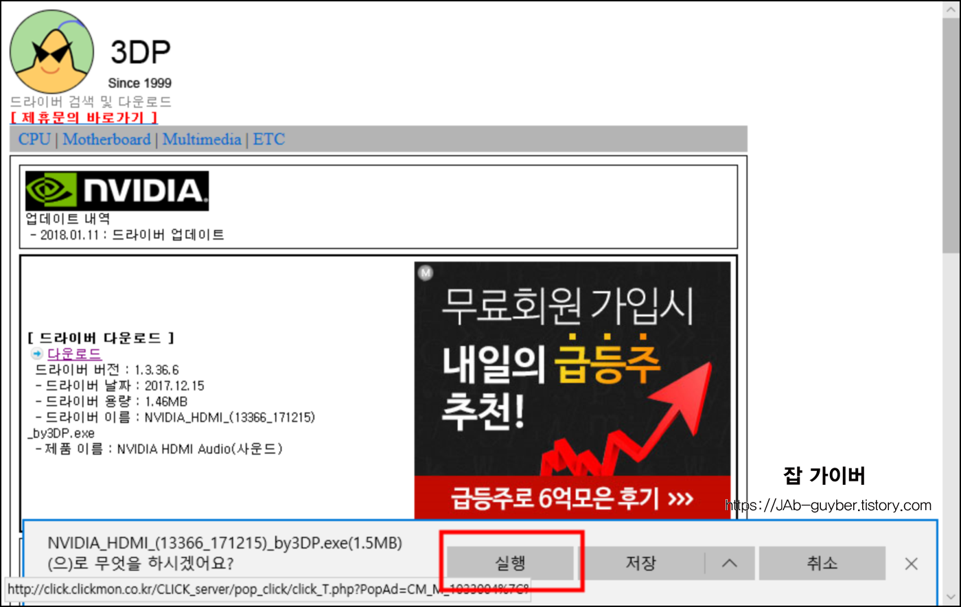 그럼 따로 사이트 접속 없이 다이렉트로 최신 버전의 드라이브를 설치할 수 있도록 연동이 됩니다.