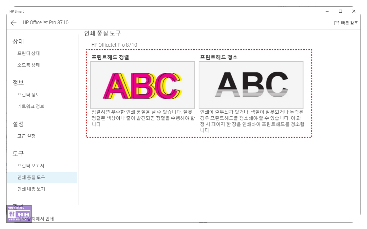 HP 프린터에서 헤드 정렬 및 청소 방법