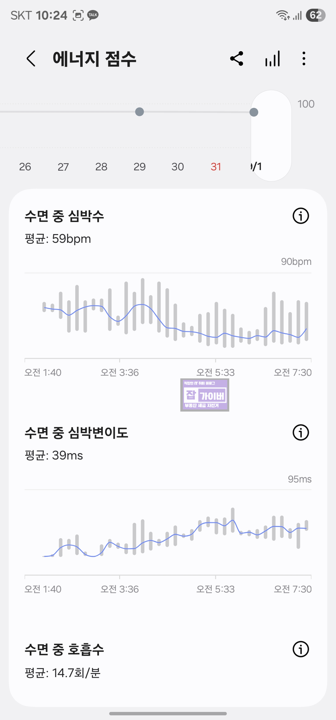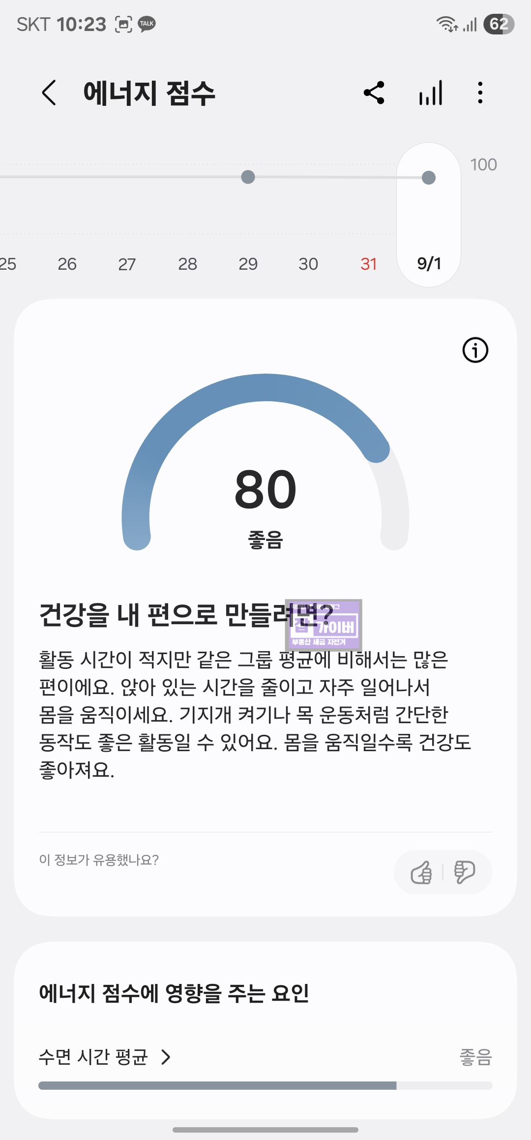 이 기능이 흥미로운 점은 단순히 수치를 보여주는 데서 끝나지 않고, 삼성 헬스 앱이 바로 생활 습관 개선 팁을 제안한다는 것입니다.