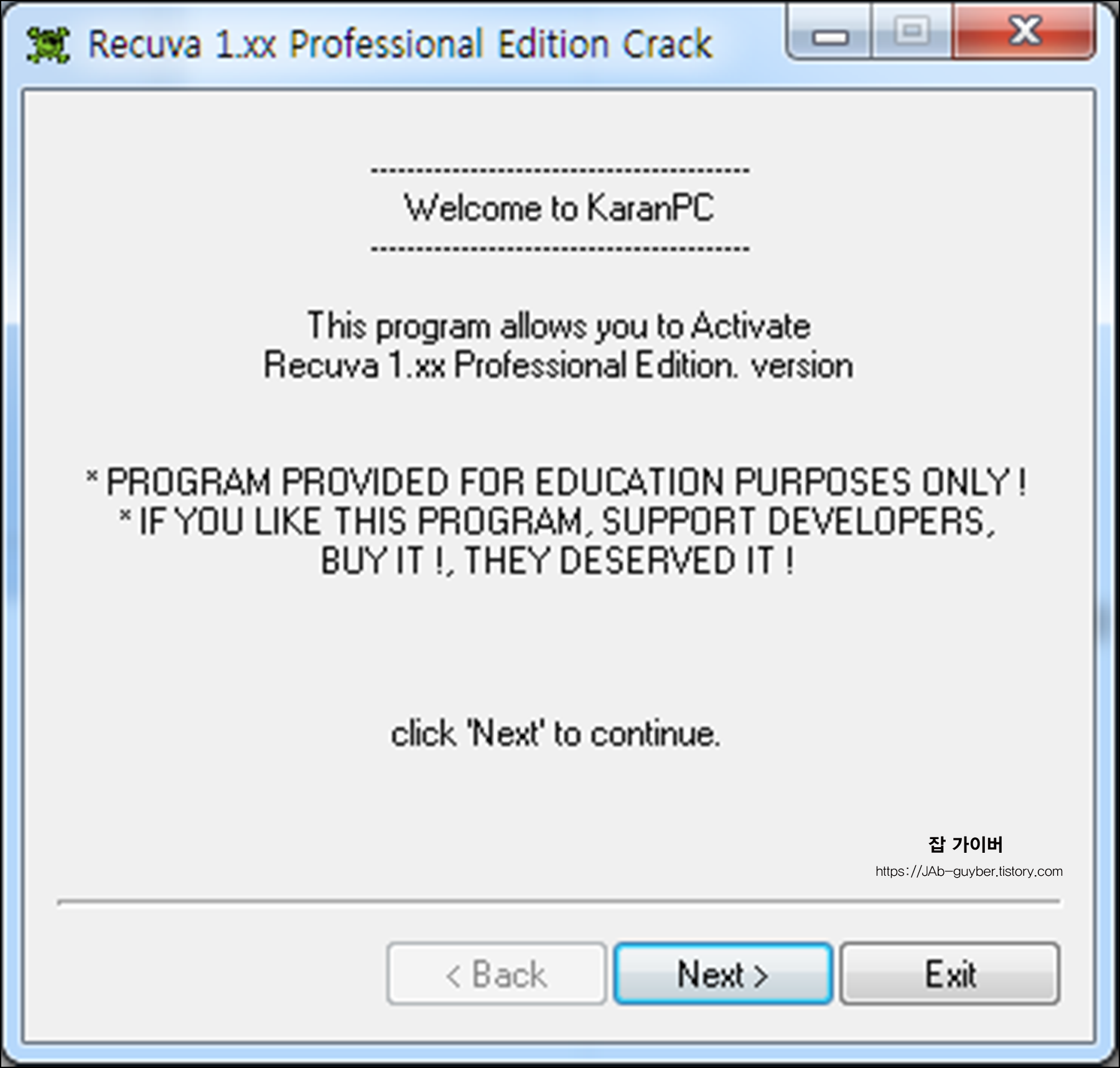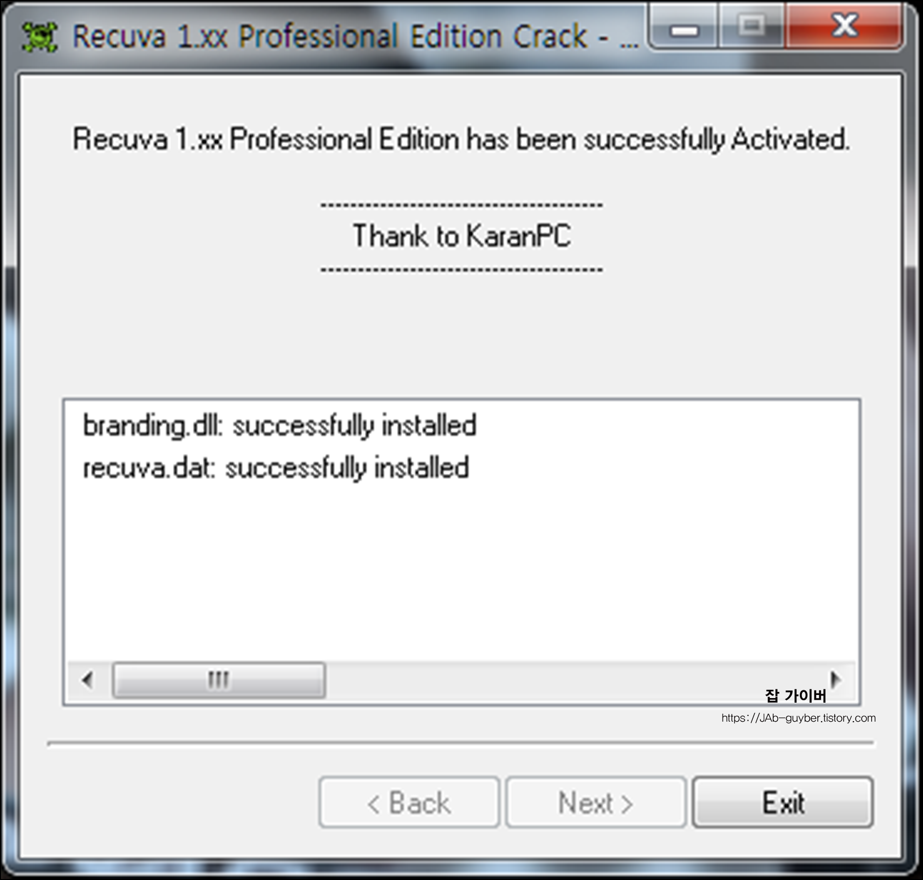 설치가 완료되었다면 동봉된 크랙 파일인 Recuva.1.xx.pro.crack 크랙을 관리자 권한으로 실행합니다.