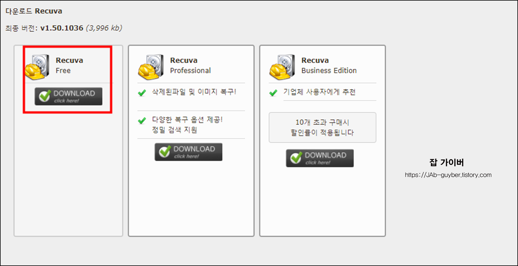 다운로드는 무료 버전과 프로페셔널, 비즈니스 버전으로 나뉩니다.