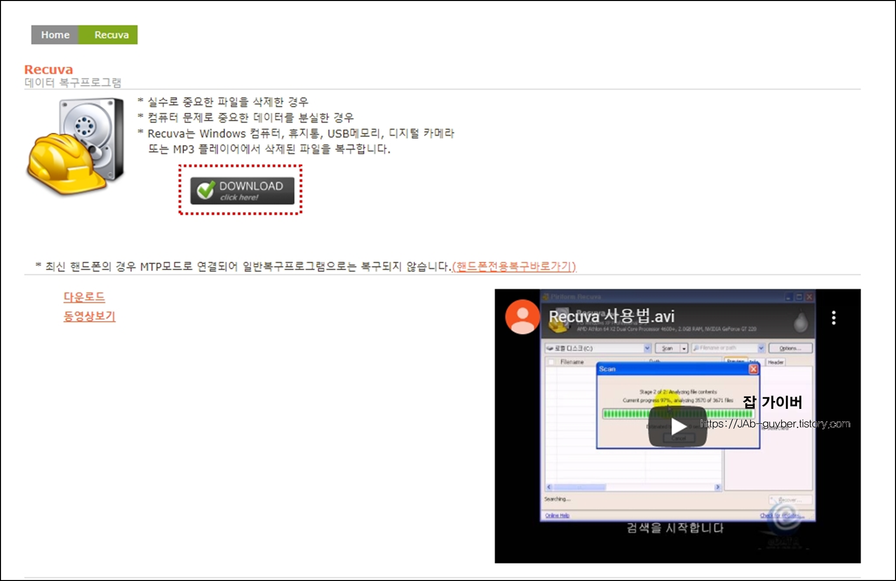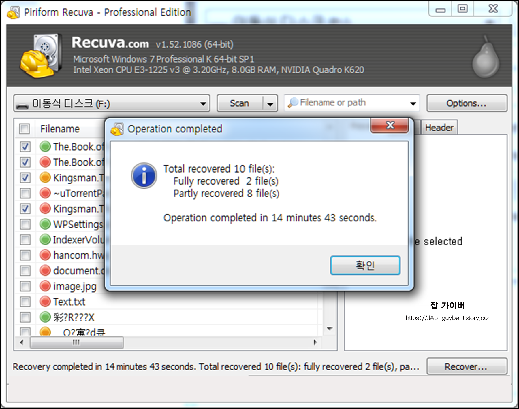 외장하드 복구 프로그램 레쿠바 설치 및 삭제파일 복원