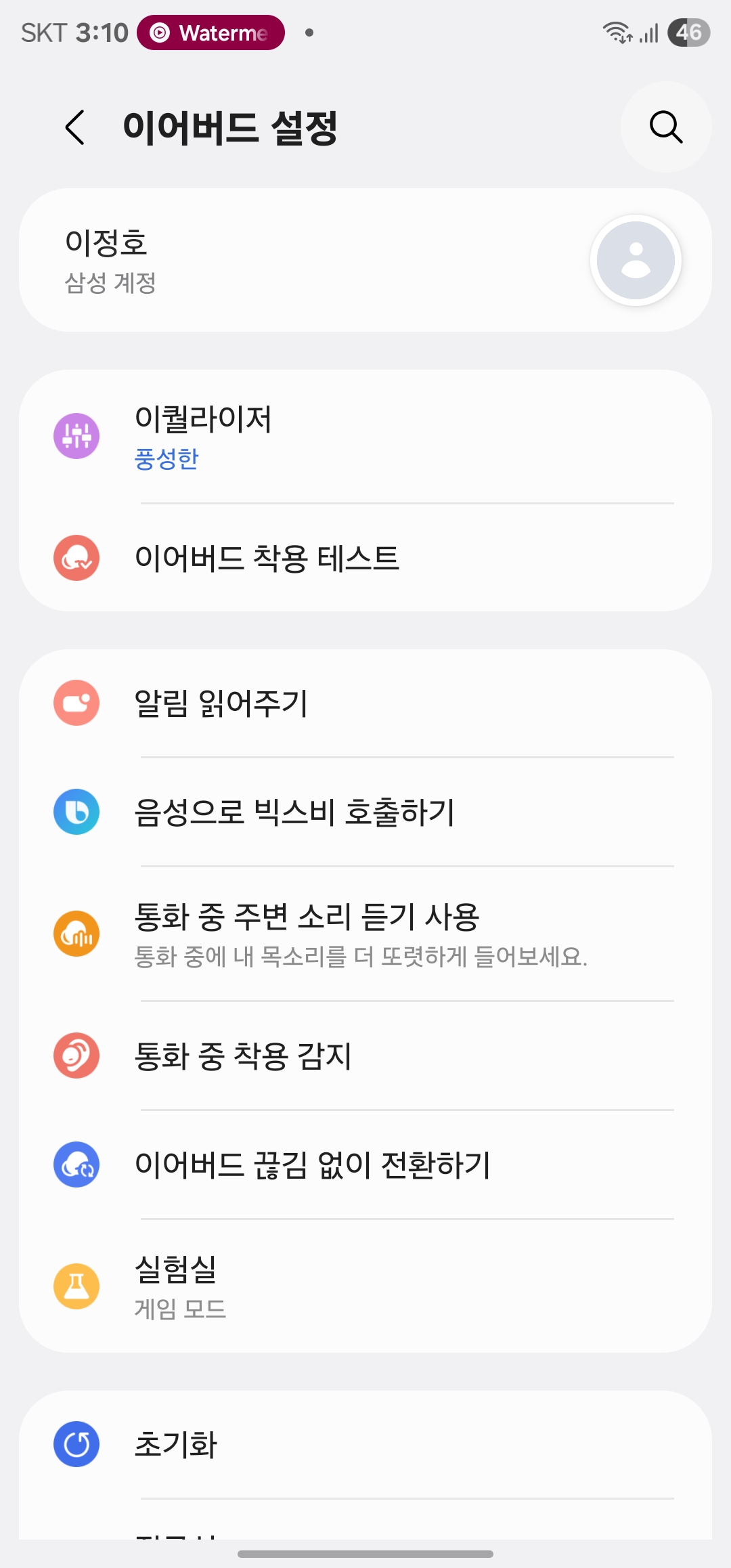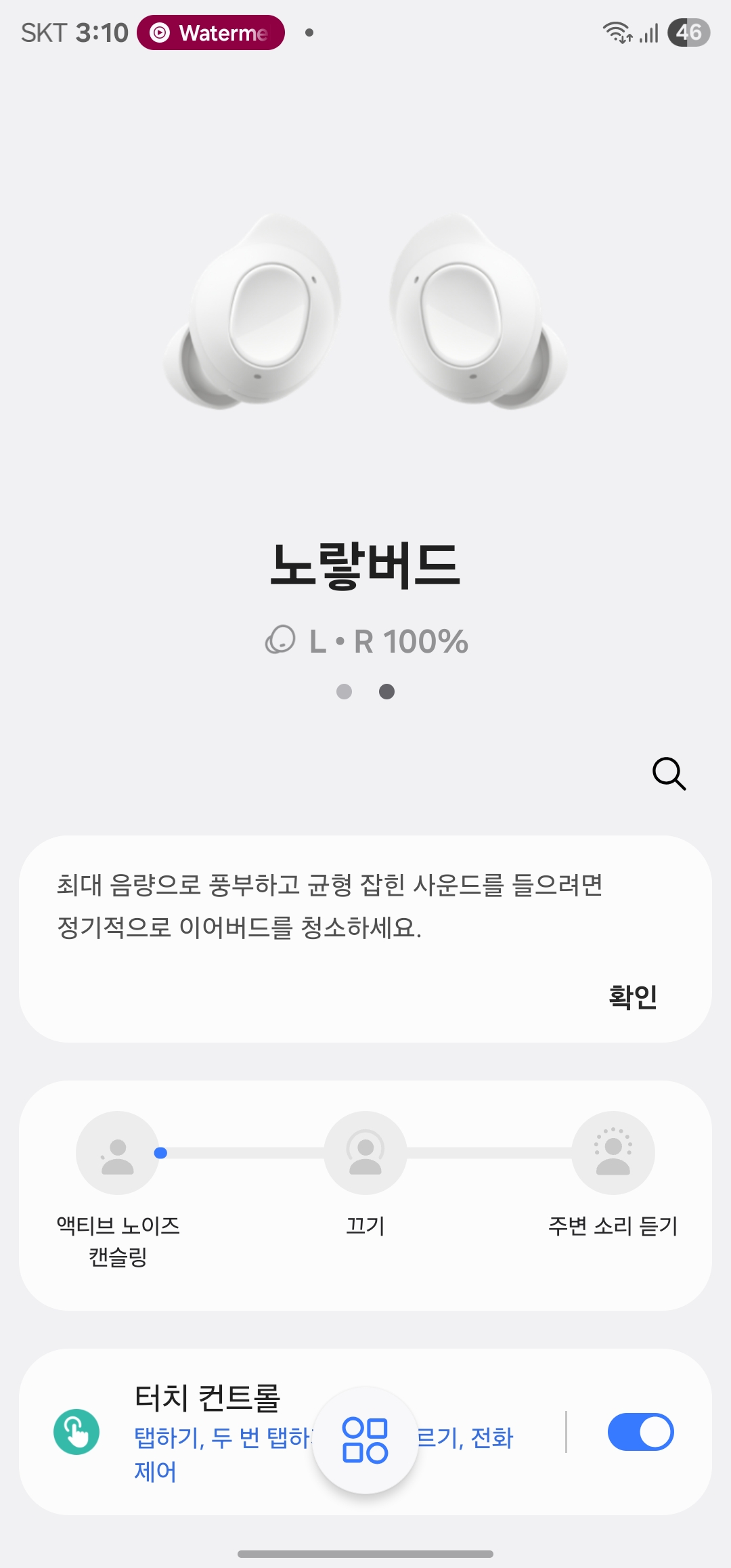 삼성 측에서 안내하는 정상 범위는 좌우 15% 이내 차이로 이 정도 차이는 이어버드 특성상 자연스러운 현상이라 크게 문제 되지 않습니다.