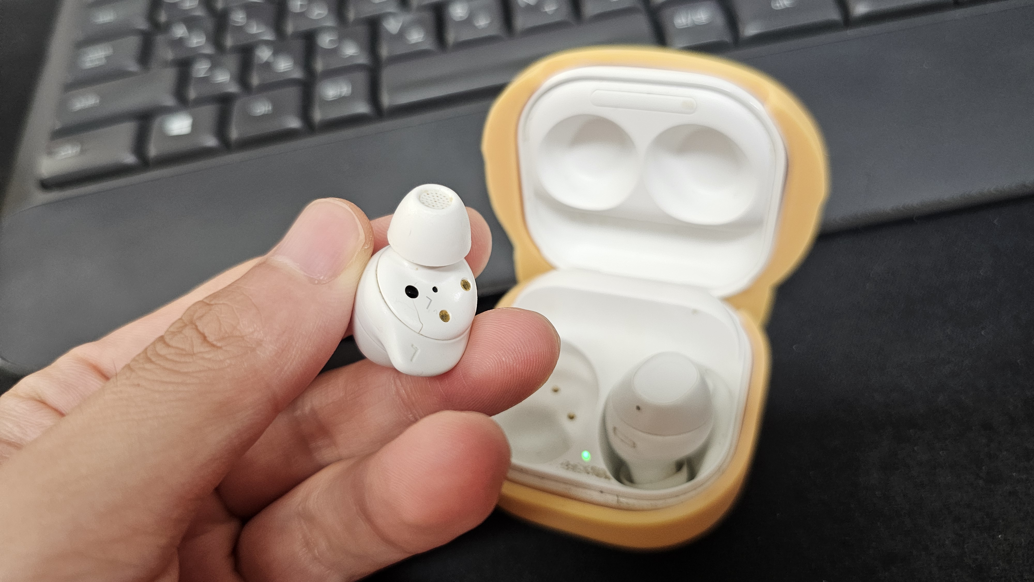 케이스에 넣어도 한쪽만 100% 충전되지 않는다면 충전 접점 불량일 수 있습니다. 접점에 먼지나 유분이 쌓여 충전이 고르지 않게 되는 경우가 많습니다. - 배터리 자체 고장