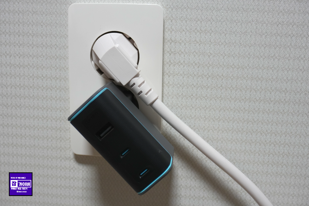 GaN(질화갈륨) 기술이 적용되어 기존 실리콘 충전기보다 발열이 적습니다. 실제로 세 개 기기를 동시에 충전할 때도 미지근한 수준으로 유지되며, 내부적으로 발열 제어 시스템(Cool+)이 탑재되어 안정적인 온도를 유지합니다.