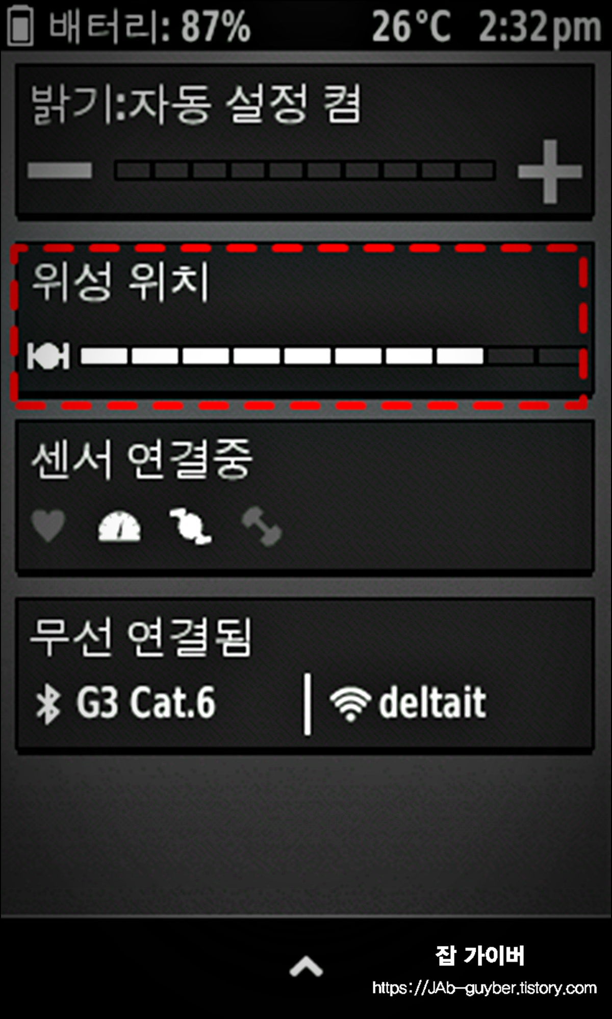 - 가민에서 위성위치를 선택합니다.