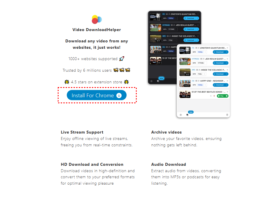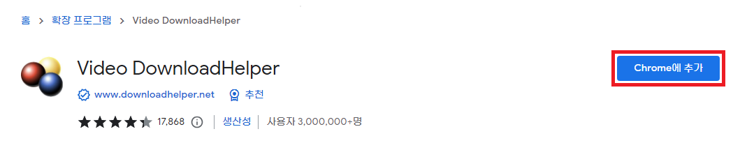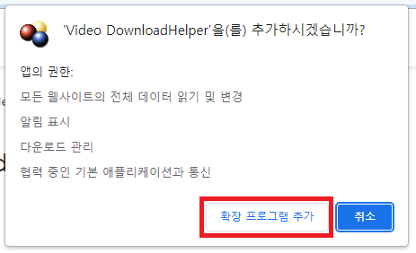 크롬 웹스토어에서 Video DownloadHelper 확장 프로그램을 추가합니다.