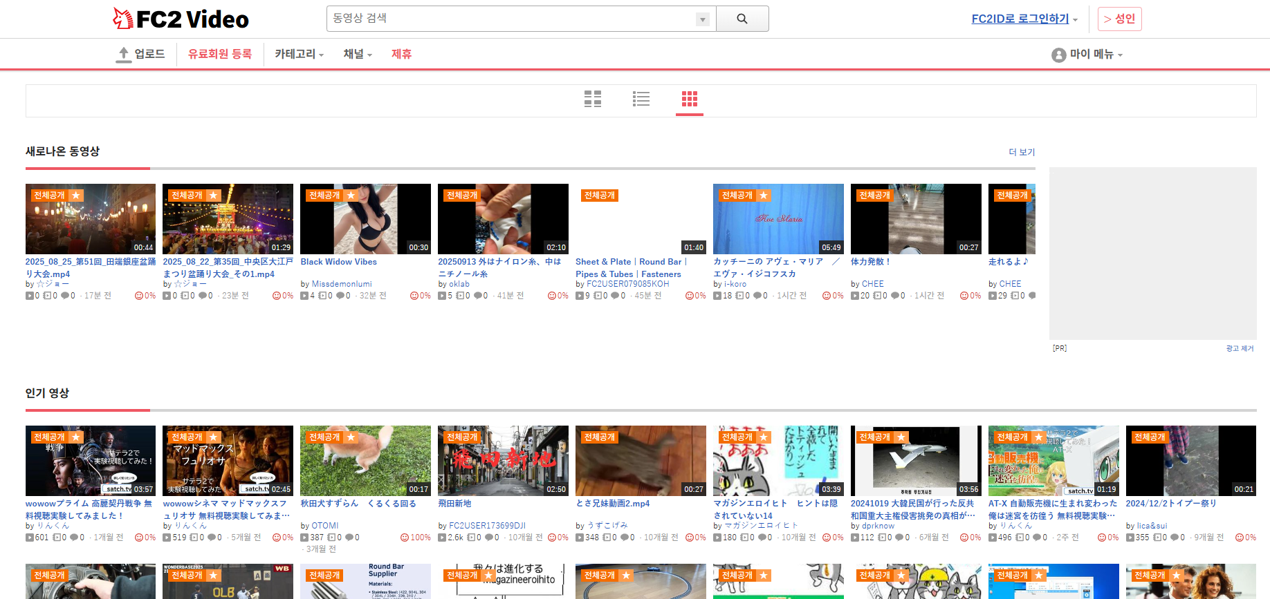 먼저 FC2 공식 홈페이지에 접속하면 다양한 동영상을 시청할 수 있습니다.