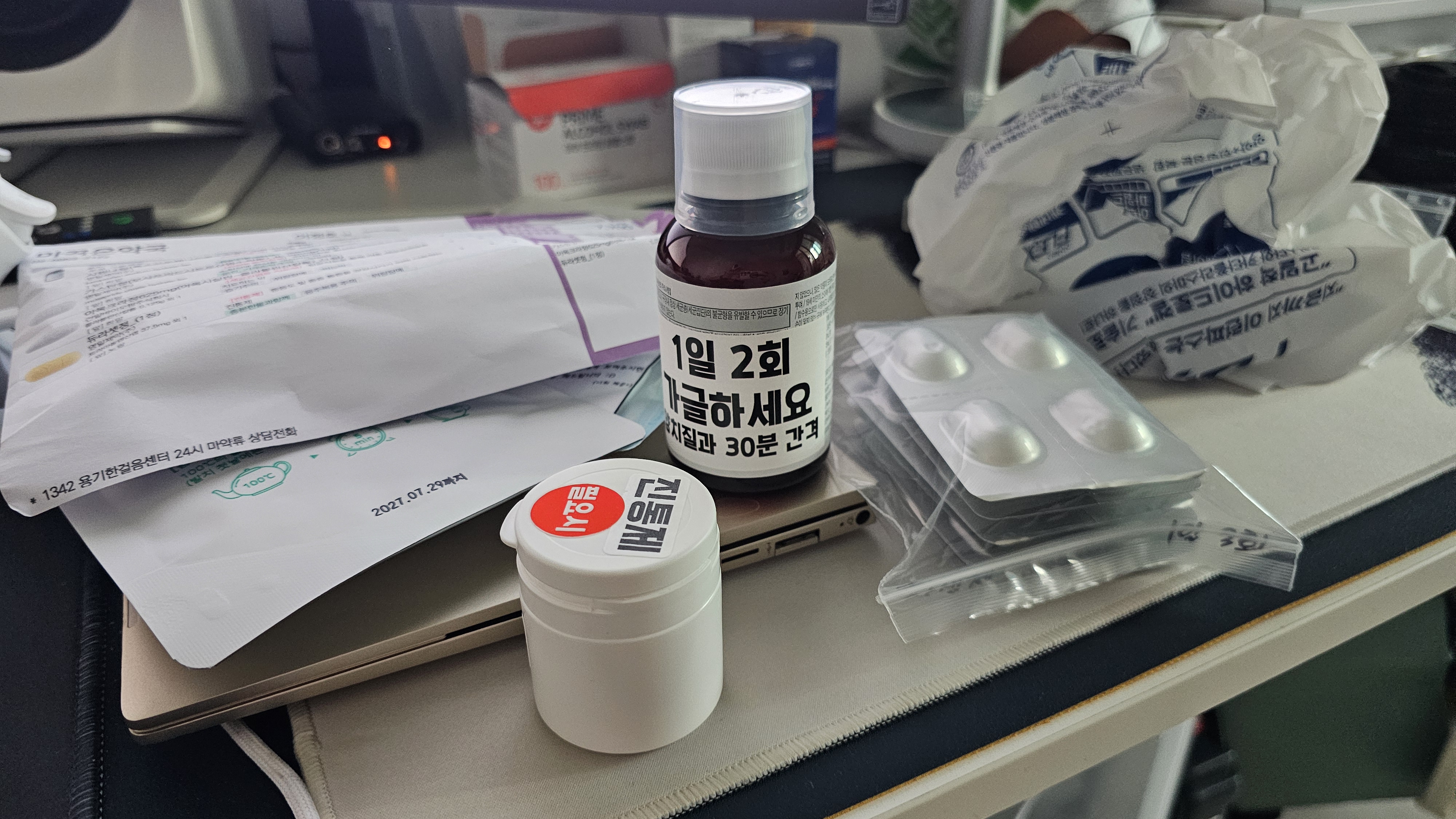 처방받은 약은 꽤 많았습니다. 식후에 챙겨 먹는 약 3종, 소독용 가글 1개, 그리고 혹시 너무 아플 때 먹으라는 추가 진통제까지 총 4가지를 받았습니다. 그만큼 발치 후 관리가 중요하다는 뜻이겠죠.