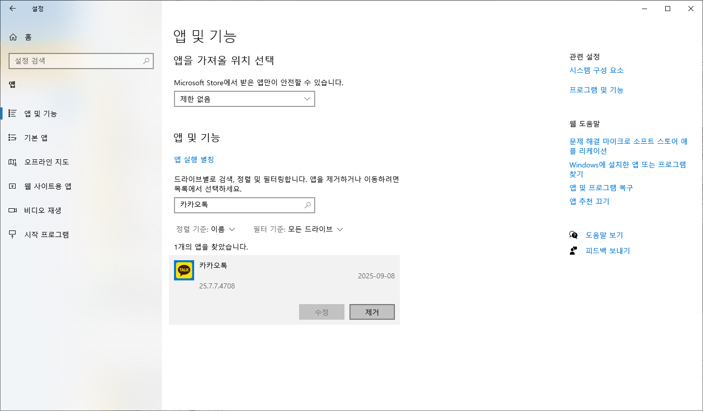 카카오톡 실행 파일이 신뢰 목록에 없으면 조용히 차단되거나 시작하자마자 종료되기도 합니다.