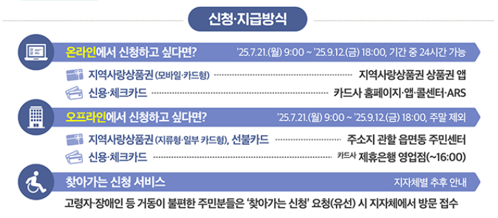 - 지류형·선불카드 : 주민센터 방문 신청 가능